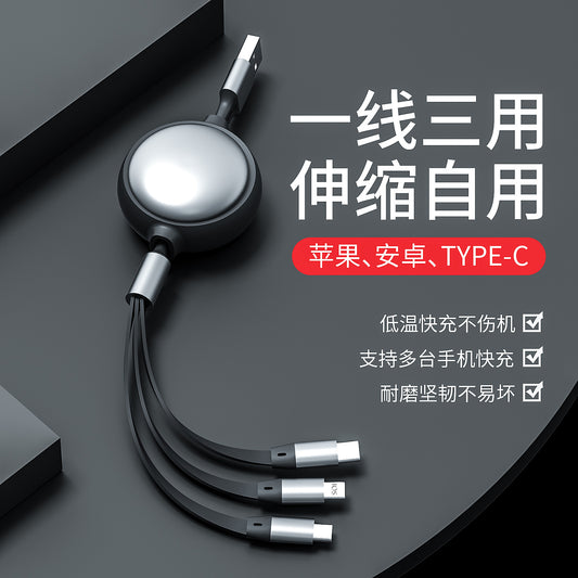 Macaron retractable one-to-three charging cable 1.2m suitable for Apple Android 3A fast charging TYPE-C three-in-one charging cable